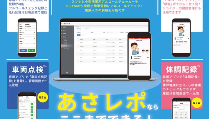 車両記録・体調記録を加えた「あさレポならここまでできる」版リーフレットを公開します用途に応じて、PDF、イラストレーター、パワーポイントの各素材をご利用くださいPDF版リーフレットイラストレーター版リーフレットパワーポイント版リーフレット