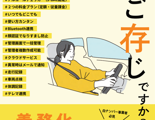 ダウンロード(会員限定) 運転日報・提案資料 2025.10.31 この情報へのアクセスはメンバーに限定されています。ログインしてください。メンバー登録は下記リンクをクリックしてください。 【提案資料】アルコールチェック確認代行サービス 前の記事